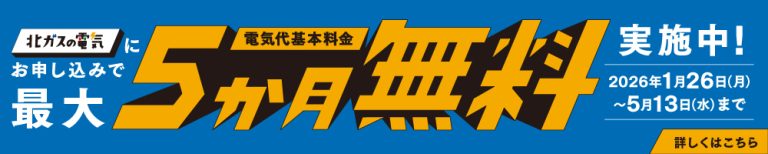 ▼今なら「電気代基本料金最大5か月無料」のおトクなキャンペーン実施中!(2026/5/13〆切)▼